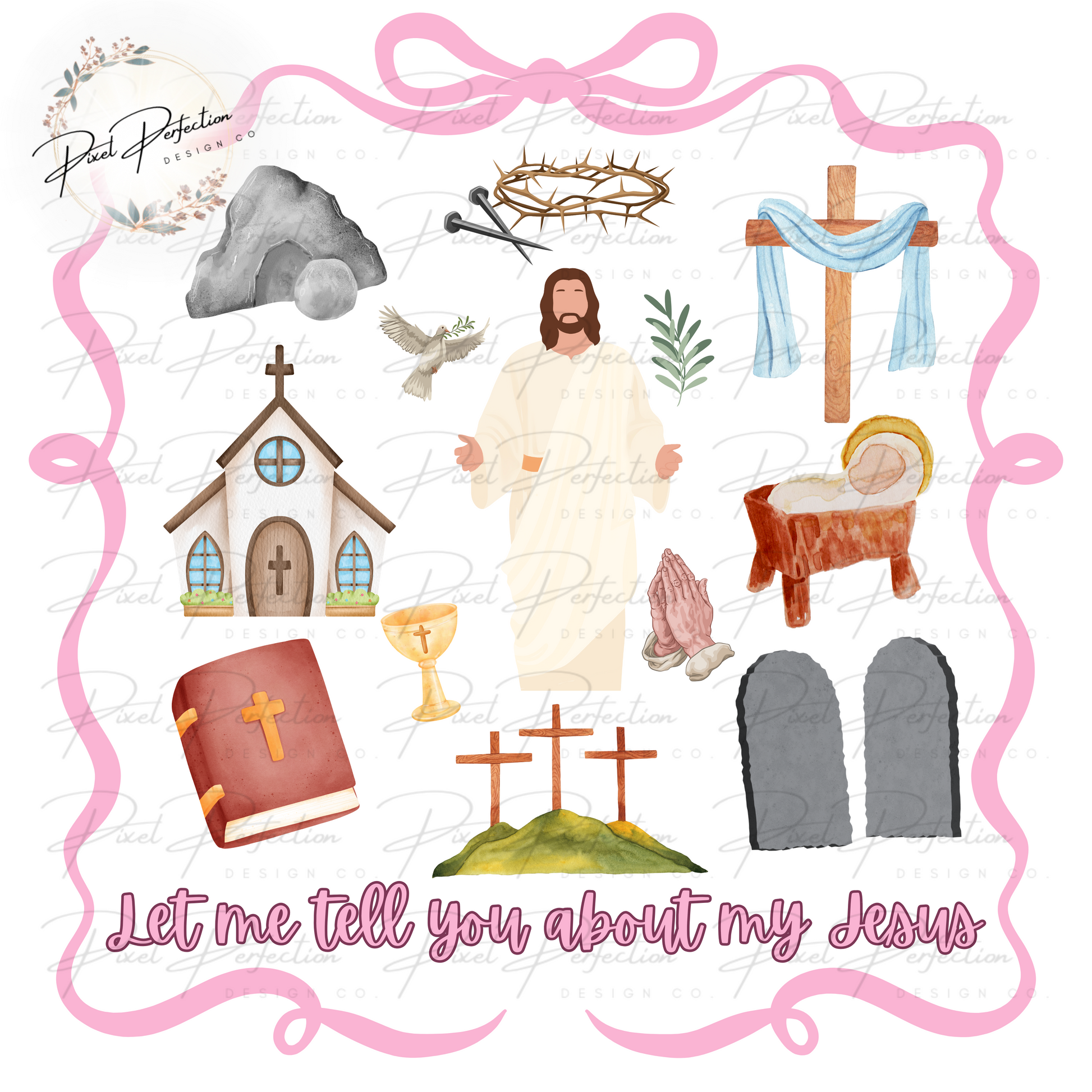 Let me tell you about my Jesus with bow frame PNG