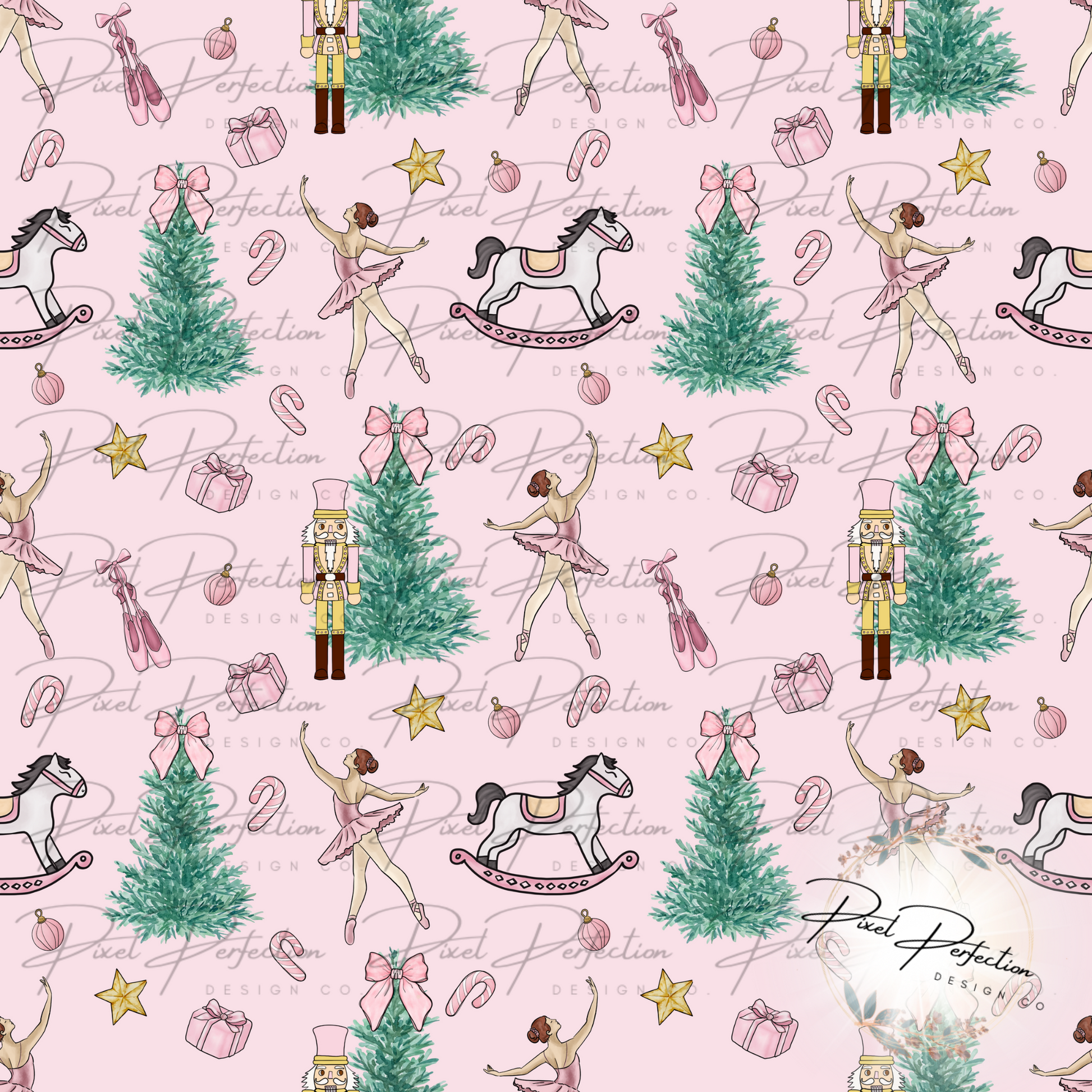 Nutcracker Ballerina Girlie Christmas with Pink background Seamless