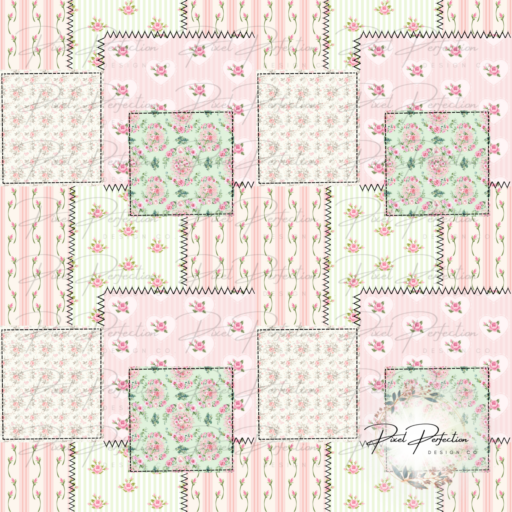 Pink floral quilt patchwork seamless