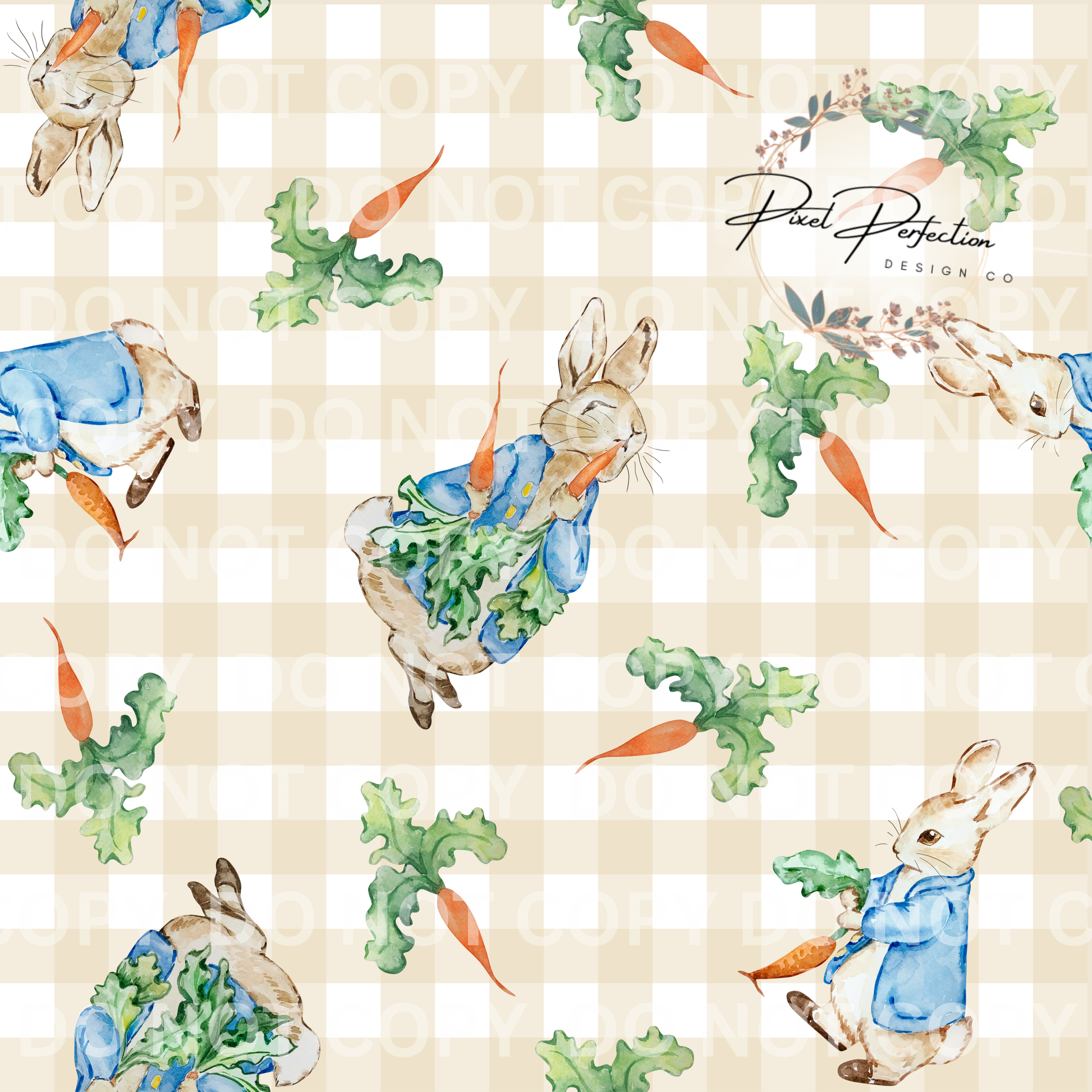 Rabbit Easter seamless with plaid background