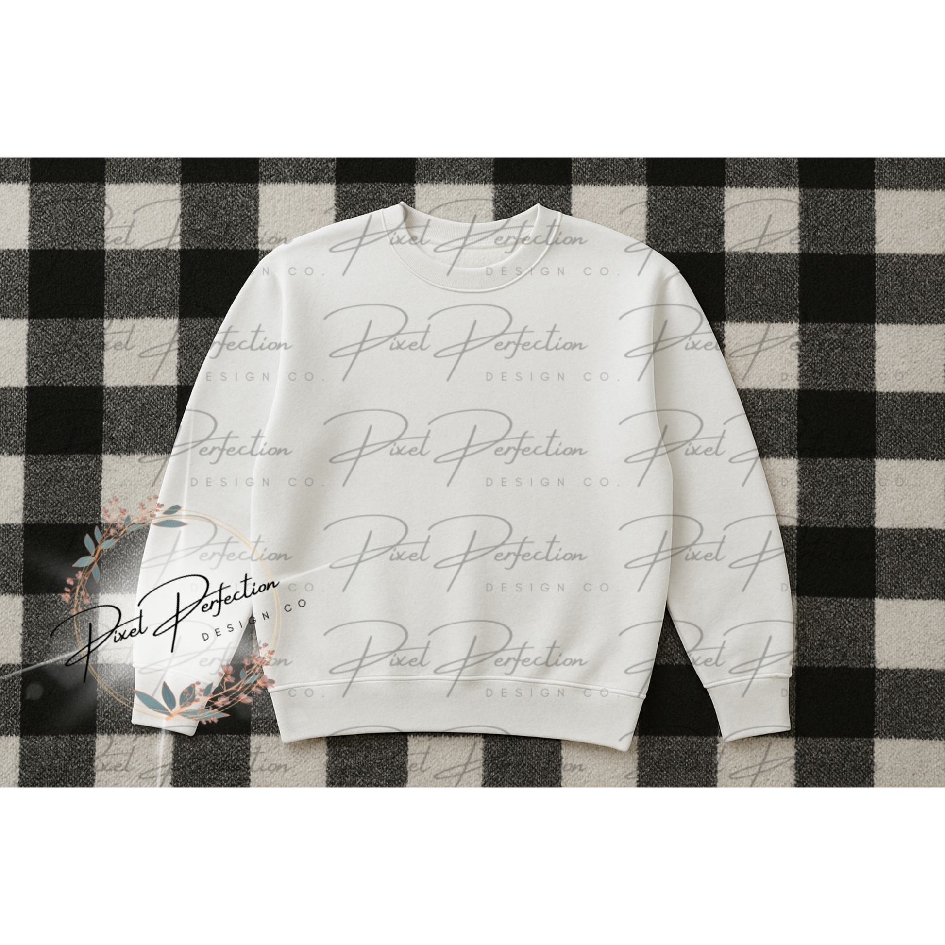White sweatshirt flat lay with black and white checkered background digital file